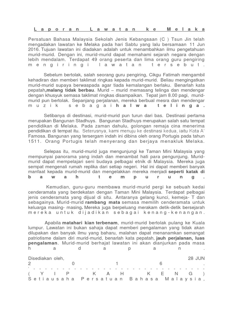 Laporan Lawatan Ke Melaka : Contoh lawatan ke parlimen laporan sambil belajar ke bangunan parlimen pada tanggal 20 mei 2015 yang lalu, lawatan sambil belajar ke lumpur telah diadakan yang melibatkan seramai 40 pelajar daripada persatuan bahasa malaysia sekolah menengah kebangsaan invictus, melaka.. Azaim best kan pergi melaka saya adam. Setiap orang pengunjung dikenakan bayaran rm8 untuk kanak&kanak dan rm+ untuk dewasa. 1 laporan lawatan sambil belajar ke melaka sk sultan abdul aziz kg kuantan 1.0 nama program program pendidikan luar bilik darjah (plbd) (lawatan ke melaka ) bersama ibubapa dan guru anjuran kelas prasekolah sk sultan abdul aziz kg kuantan. Kerajaan negeri bersetuju membenarkan kemasukan individu ke sabah dengan beberapa perincian sop baharu, antaranya membenarkan kemasukan individu ke sabah untuk tujuan sosial. Laporan lawatan ke melaka bandar raya bersejarah.