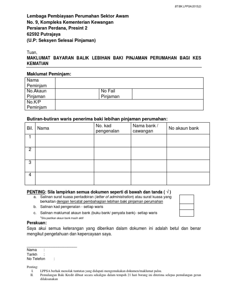Bermula 1 januari 2016, bahagian pinjaman perumahan (bpp) telah dijenama semula kepada lembaga pembiayaan perumahan sektor awam (lppsa). Bahagian pinjaman perumahan(lppsa) ditubuhkan dengan visi untuk menjadi agensi pembiaya perumahan sektor awam. Permohonan pinjaman perumahan kerajaan 2020 online (borang lppsa). Cara semak baki pinjaman perumahan kerajaan lppsa. Anda boleh juga boleh membuat semakan status pembiayaan dan baki pinjaman maklumat lanjut mengenai lppsa myfinancing. Selamat membuat semakan baki pinjaman perumahan kerajaan secara online dan sms. Selepas pembentangan bajet 2018 pada 27 oktober tahun lepas, lppsa mengemaskini dan melakukan penambahbaikan kemudahan pembiayaan mereka. Bagaimana cara membuat semakan baki pinjaman perumahan kerajaan secara online? Untuk semak status pinjaman perumahan lppsa boleh menggunakan format Semak baki pinjaman lppsa secara online. Kaedah semakan secara online adalah melalui portal sistem perumahan bersepadu (sppb). Cara menyemak baki pinjaman perumahan dari kerajaan lppsa. Korang boleh memohon pinjaman 100% berdasarkan kelayakan pinjaman yang telah ditetapkan bagi setiap jumlah tingkat.